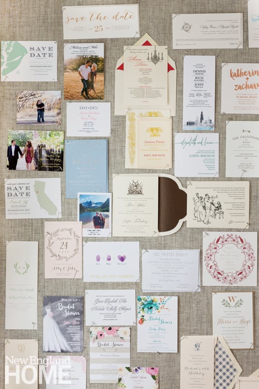 Her studio is located in an attic-like space—white-on-white-on-white and well lit—in Sconset Square. Stationery (and oh-so-much more) is displayed on open shelving, in cubbies, on tables, and spinning card racks. Appreciate pretty paper things? You’ll get that kid-in-a-candy-store feeling the moment you step inside. On a recent Saturday afternoon, Lebowitz sat at a white Parsons table, one of several work stations, contemplating where on the crowded wall she could pin yet another one of her wedding invitations, her stock in trade.