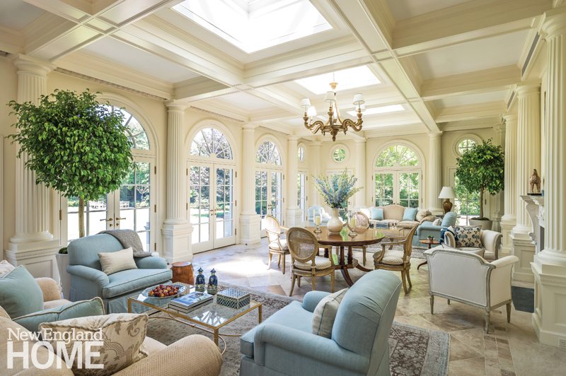 The owners of a large, 1920s Federal-style home in Chestnut Hill, Massachusetts, certainly felt lucky to live in a dwelling designed by William Perry, the architect behind the restoration of Colonial Williamsburg. They discovered one drawback, however: the living room sometimes felt too somber, dark, and formal.