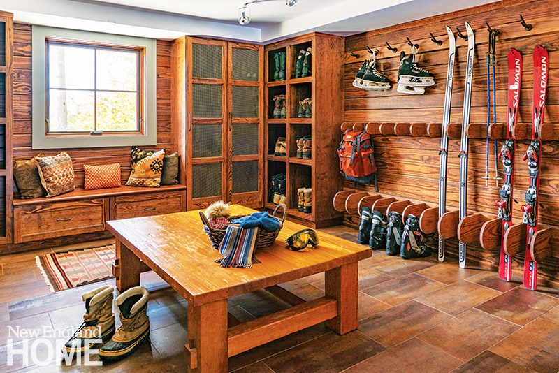 Their Lakes Region, New Hampshire, vacation house, affectionately referred to as the “Ski Shack,” had served them well. But over time, as the outdoors-loving family expanded, so did its ever-growing collection of recreational equipment, from skis to snowboards to ice skates and piles—and piles—of cold-weather gear. “The owners came to us with a challenging request,” remembers architect Tobin Shulman, principal at SV Design. “They needed space to neatly and efficiently stow their gear and also wanted a relaxing hobby room and family room that would appeal to their entire multigenerational family.”
