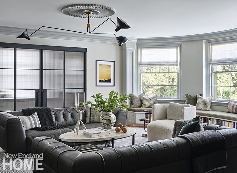Those bones belong to a three-bedroom 2,800-square-foot condo in a prewar building in Boston’s Back Bay. A renovation fourteen years ago included a sleek kitchen that Forman and the team at Eleven Interiors left as is, but the rest of the home needed updating, starting with the lighting plan.