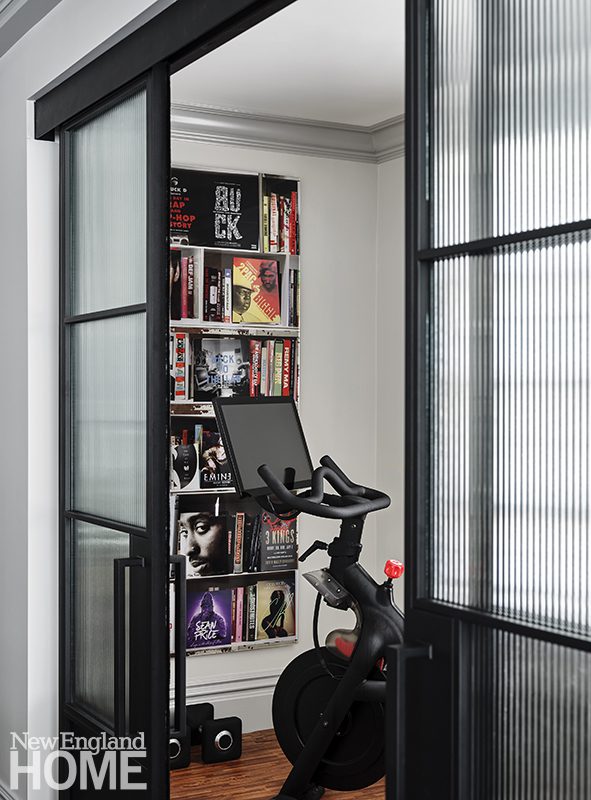 corrals workout equipment. “They can shut the doors, and the living room is ready for a cocktail party,” says Forman.