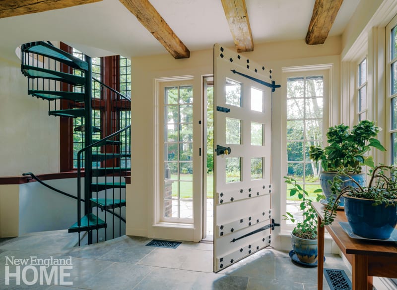 Along with the hammam itself, Knerr designed a small two-story addition above, integrating it with the storybook facade of the main house. The nine-by-ten-foot first floor of the addition houses a solarium, and a spiral staircase leads to the husband’s office above and the bath below.