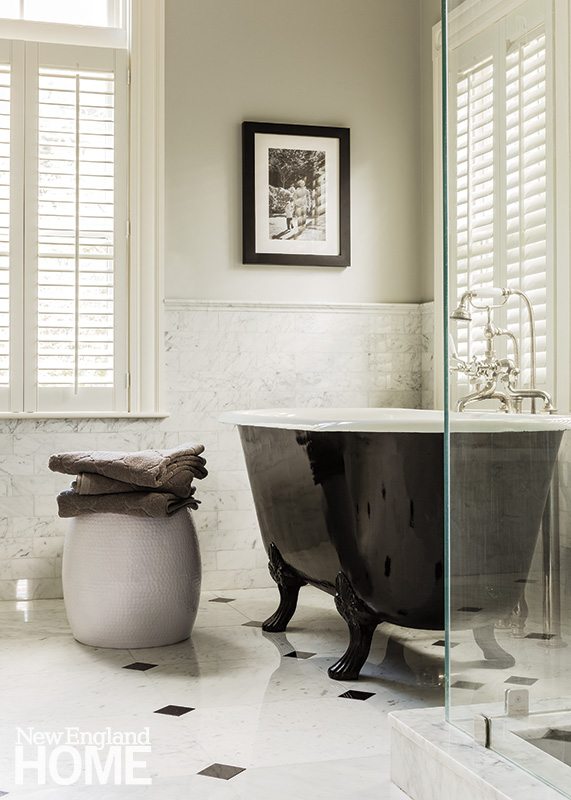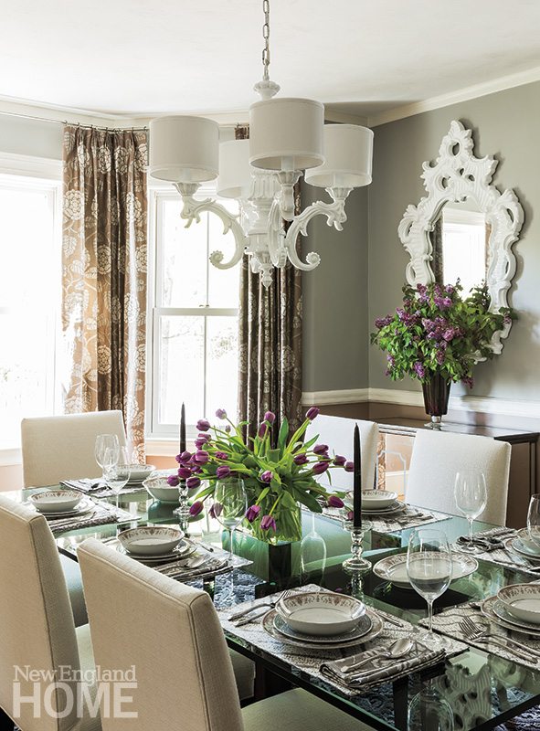 “It was daunting for these clients to move from a clean-lined, minimalist home to an 1894 Victorian in Wellesley,” says Langlois. “At first, Meghan wanted a contemporary look, everything white. I said, ‘You know, contemporary scares me.’ Think of the dirt coming in with three kids.”