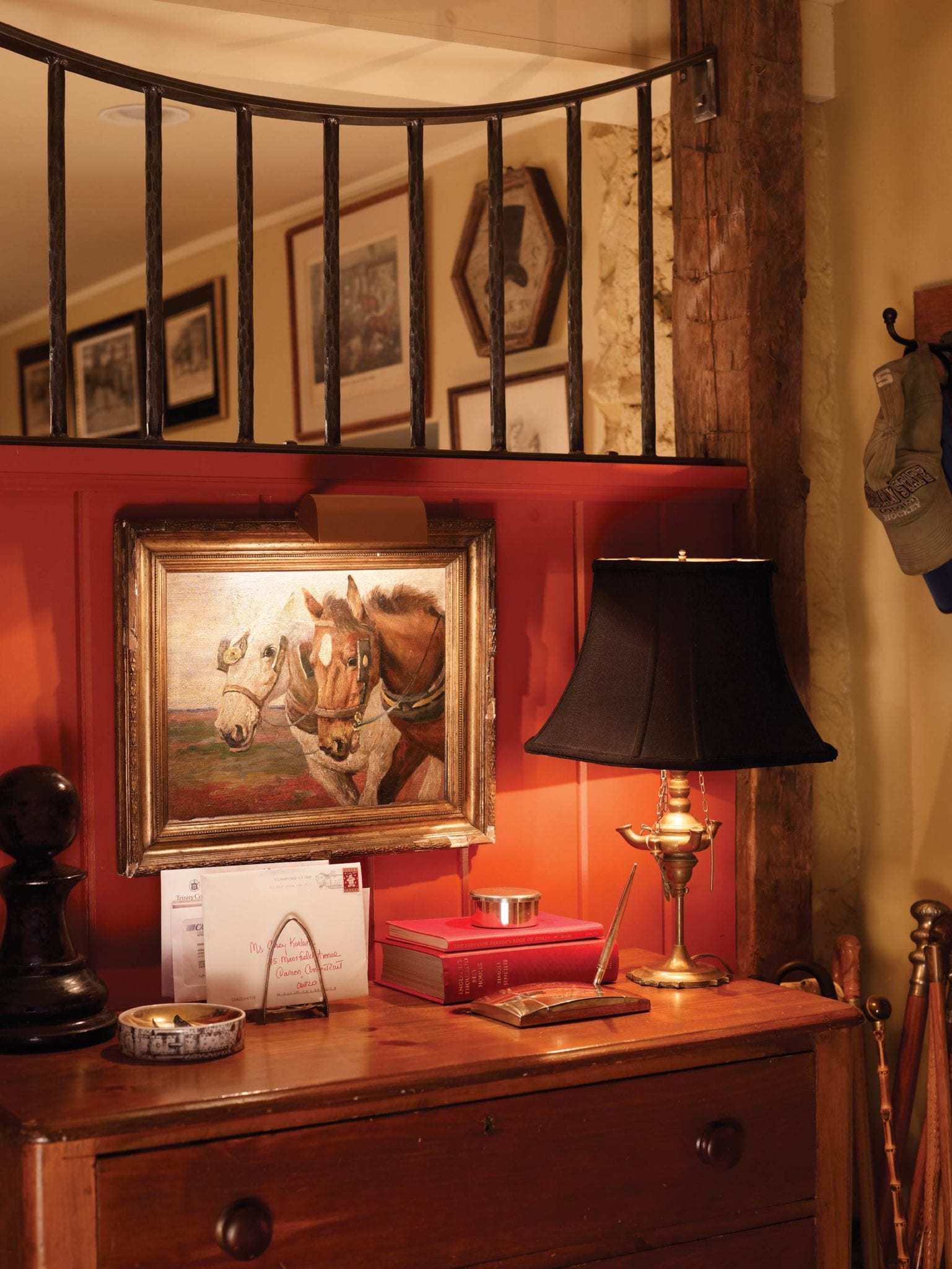 “We don’t even ride,” says Karlan of the hats, crops and equestrian paraphernalia she collected from tag sales and antiques stores. “I just think it’s charming.”