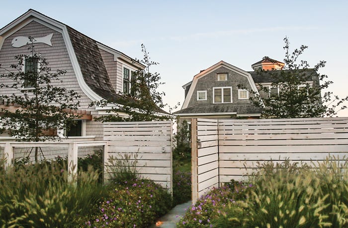 Every summer, the owners make their way down a picturesque, half-mile sandy road lined with scrub oak. At the end sits their jewel of a house on a green slope that coasts through