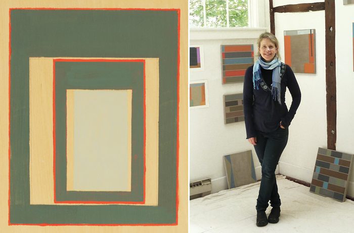 Elizabeth Gourlay explores the dynamic interplay between color and form in abstract paintings that have extraordinary power. The bold geometry, such as the