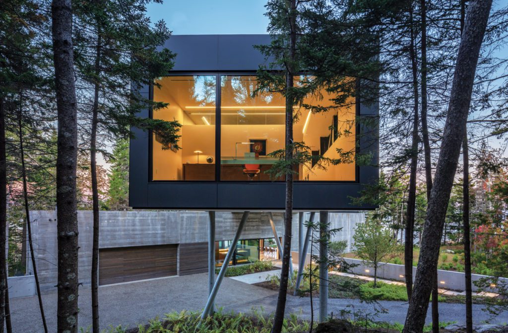 Grounded in the forest while simultaneously soaring above the sea, this modern marvel in