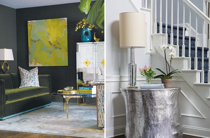 Gold tones and interesting shapes bring a touch of glam to a coastal home.
