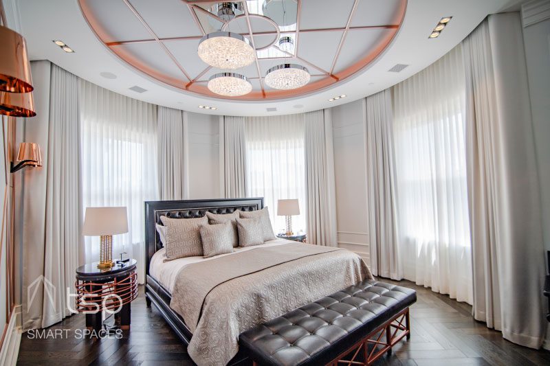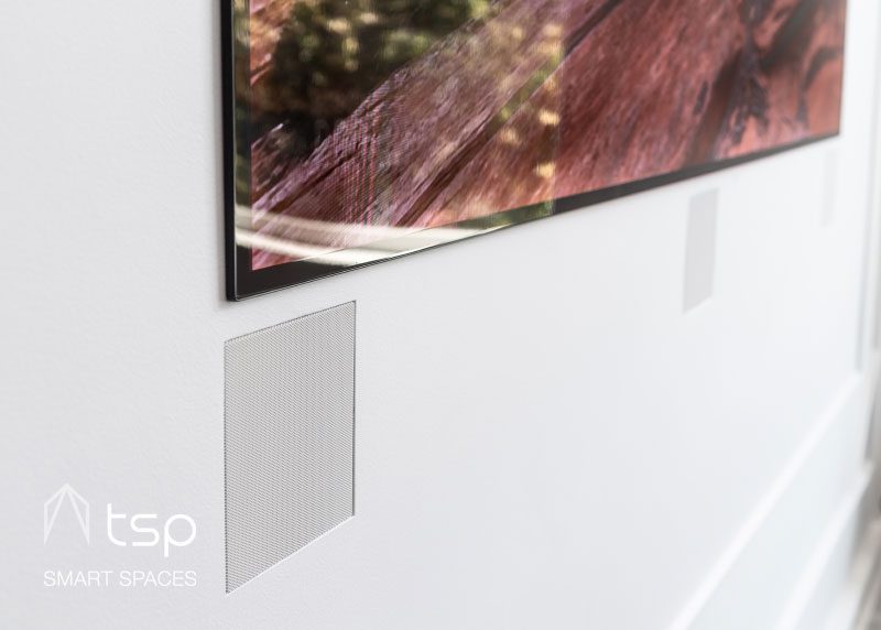 Amina’s patented invisible speaker technology is installed in this music room to bring impeccable sound quality without being seen.