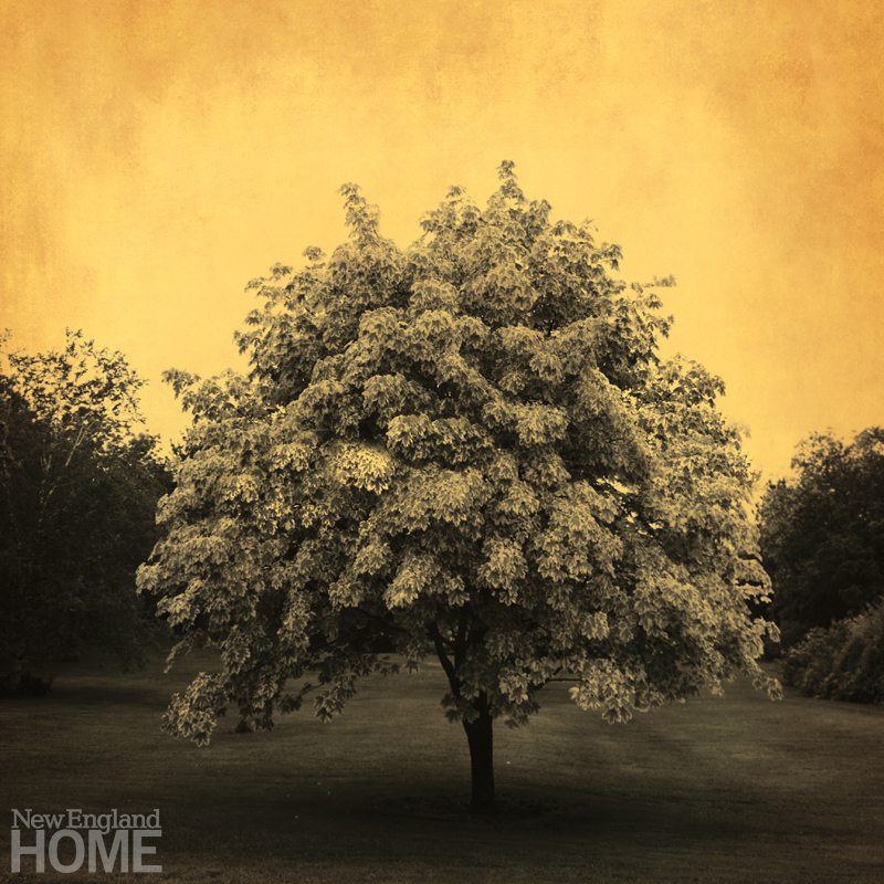 Tenneson relocated to Rockport, Maine, following the sudden loss of her partner, film director David Jones, in 2008. She was searching for a new project when a view of trees outside her window at dawn inspired another series, and another book, called Trees and the Alchemy of Light, in which Tenneson records the spiritual nature of trees in transcendent prints she created by applying gold leaf to wood and then varnishing the photograph to the surface.