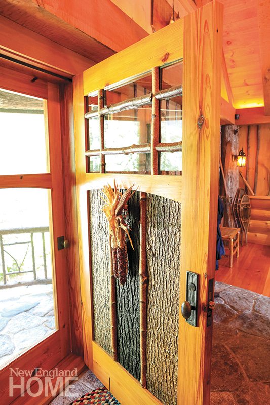 After looking at lots of camps and buildings in the Adirondacks, Williams concluded that while they had “lots of nice moments in them,” he wanted to design a house that had “nice moments everywhere.” So the team didn’t just buy a door; they asked each other, ‘How can we make a door that’s truly special?’” They designed a distinctive detail for each room: a band of multicolored cherry and birch twigs in one room, lighting hidden beneath a dentil covered with white-birch bark in another. They crafted door pulls and towel bars from sticks.