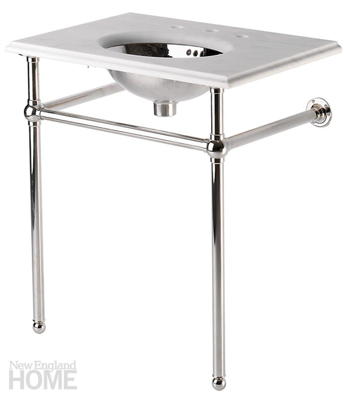 Waterworks Universal Washstand "I love the proportion and balance of this washstand. The openness keeps the powder room airy and spacious in feeling. It is an historic form, but it works beautifully with an updated aesthetic, too." Boston Design Center, (617) 951-2496, waterworks.com