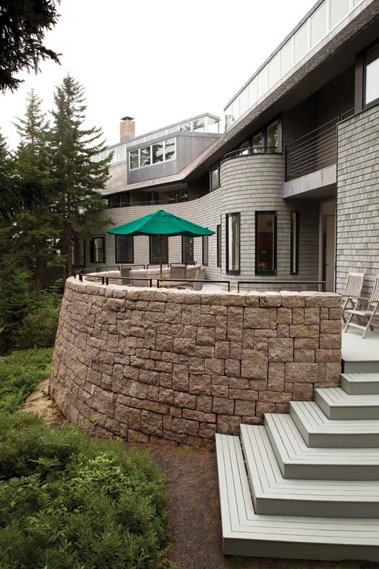 Boucher’s work with modern architecture, in particular, redefines standard notions of landscape design. “I like to create landscapes that are extensions of architecture,” he says. “In this case, we built a bridge, stairs, patios and a trail network around the house with deliberately crafted granite pieces. We get people to the front door while they don’t know where they’re headed.”