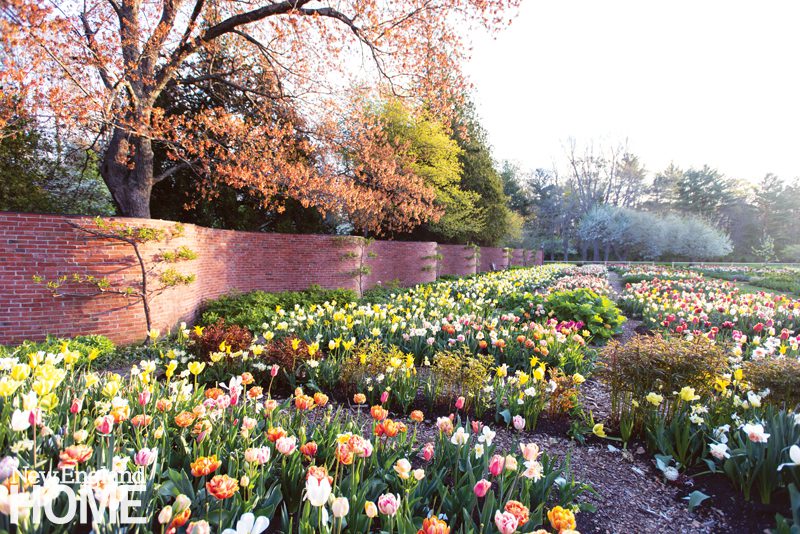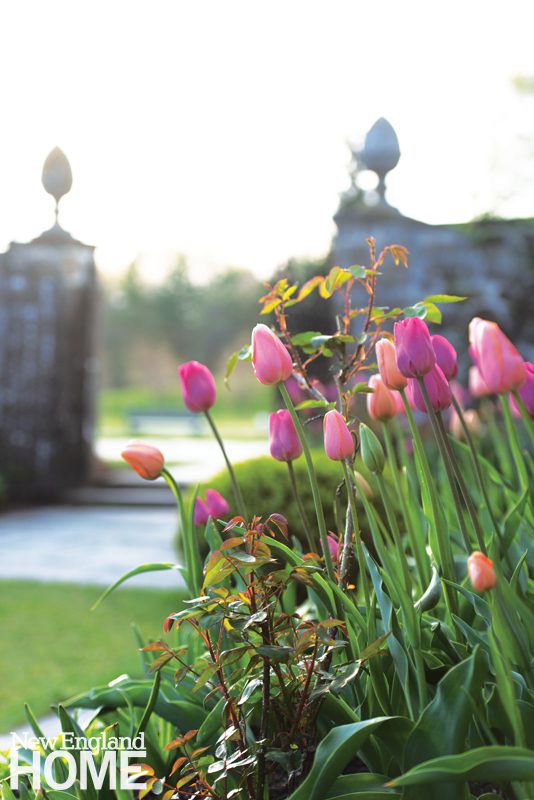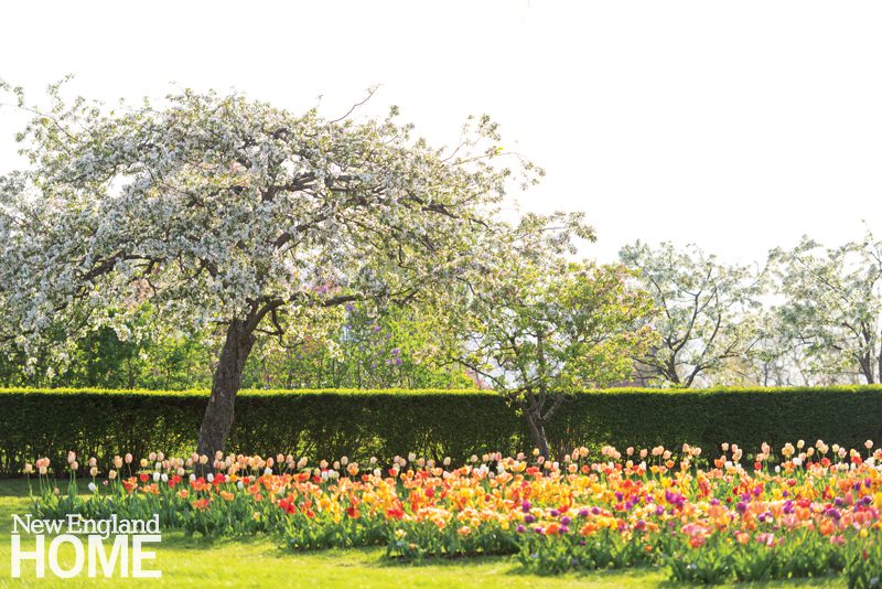 Taking inspiration from Jefferson, Chandler designed a serpentine wall, potager, promenades, and tree allées. Soon a full-fledged formal spread with all the fixings was happening around the neo-Georgian Colonial Revival house. To pay homage to Chandler and Stevens Coolidge’s vision, The Trustees of Reservations, which became stewards of the property after Stevens Coolidge passed in 1962, imagined a Spring BloomFest four years ago.