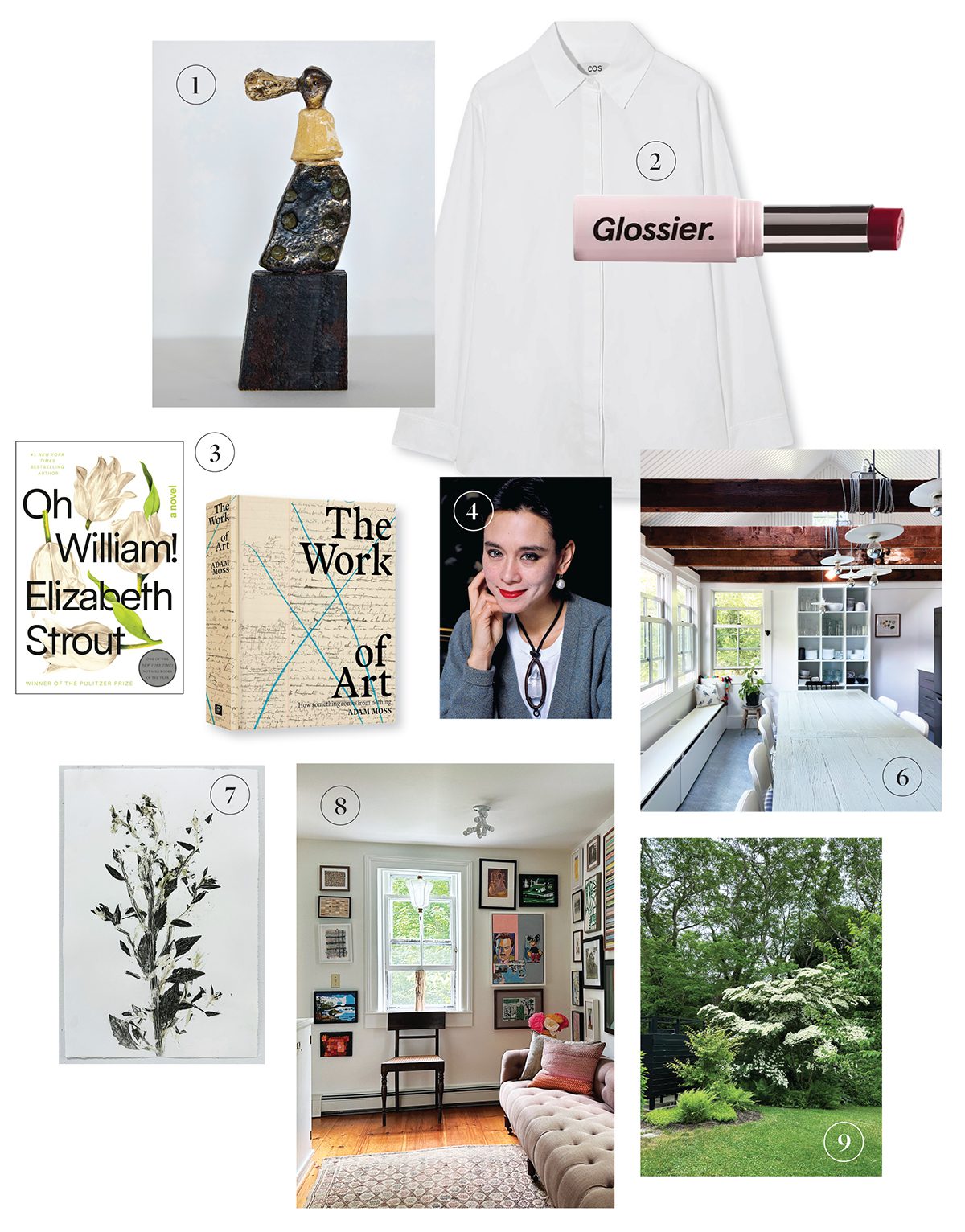 2. In my handbag and closet you’ll always find…a lipstick brush—and a tube of Glossier lipstick in Vesper—and too many white shirts. For years, I made a twice-yearly pilgrimage to Brooks Brothers to purchase the piece of clothing that has most defined me: a men’s shirt, size 16 ½, 33, preferably broadcloth, straight collar, only in white, and monogrammed in black, sans serif, on the shirt’s pocket. But alas, once that bastion of conservative dress introduced the no-iron shirt, we parted company. I changed the paradigm and now purchase any beautiful white