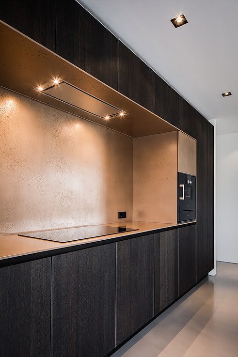 “We’re known for our fine finishes, but this takes our capabilities to a new level,” says Bateman, whose painting and contracting company is based in southern New Hampshire. He creates metal looks on everything from walls, counters, and cabinets to range hoods, handrails, and backsplashes throughout the greater Boston area.