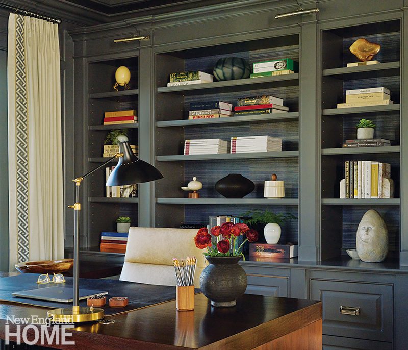 “It was a big white box, a big white boring box.” That’s how interior designer Christina Roughan describes the home office her New Canaan client asked her to transform into a multipurpose room. He wanted a combination office and sitting room that would be more comfortable and reflect his myriad interests and tastes. “It needed some personality and that was a challenge that excited both of us,” remembers Roughan, who had completed several other interior design projects at the client’s traditional Georgian home.