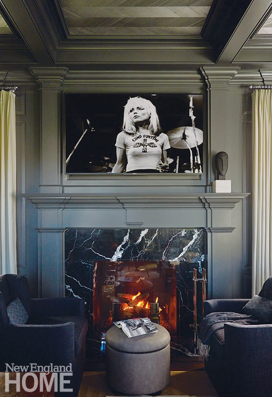 Roughan sent the homeowner loads of portraits to choose from, and he settled on a who’s who of rock and roll legends, from Keith Richards and Slash to Freddie Mercury, Elton John, and, in pride of place over the new Saint Laurent honed-marble fireplace, Debbie Harry. “I told him, ‘You have to have at least one woman in here,’ ” says Roughan, her green eyes twinkling.