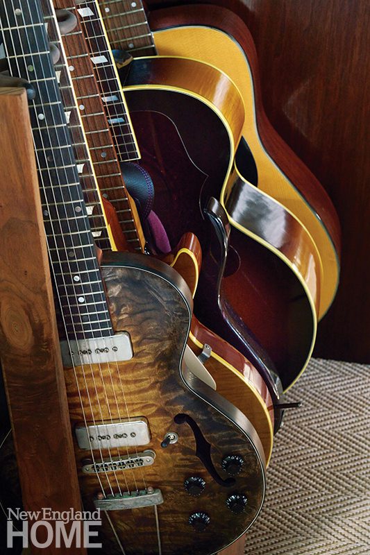 Where to start? “The first thing I noticed in his office was a collection of exquisite guitars that were stacked up against a wall,” says Roughan. “When I asked him if he played, his eyes lit up, and he told me he did. Then he added that he’d even been in a rock and roll band years ago. Bingo! I had my design theme.”
