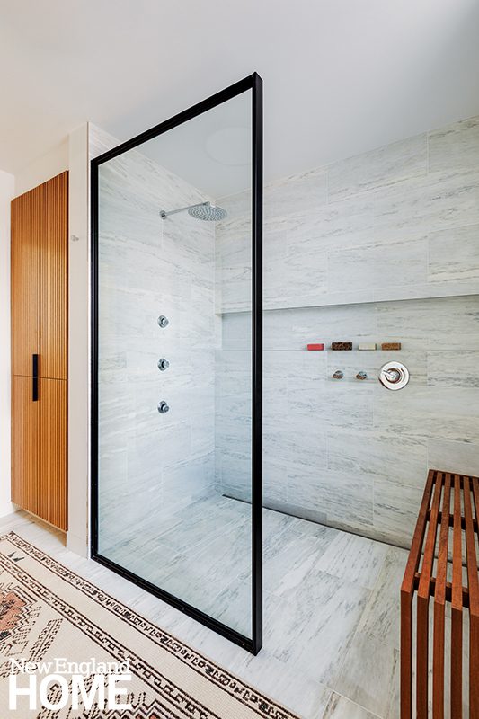 That didn’t mean taking a sledgehammer to the home’s past, though. On the contrary, great lengths went into pulling up the original hardwood flooring to install radiant heat. The pumpkin-pine planks were restored and treated with an ultra-matte water-base finish. Each one was painstakingly put back where it belonged, recalls project manager Jarrod Bannon.