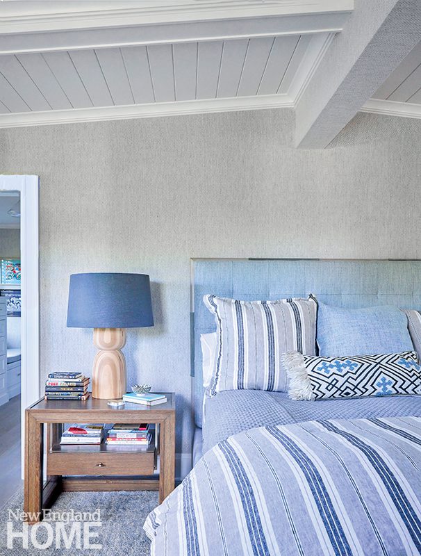 Filicia was tasked with updating the interiors and making them feel more cohesive without obliterating the home’s quirkiness. “It was about tightening up the materials and tightening up the aesthetic,” says the designer, who installed prefinished white-oak floors throughout and painted all the interior doors a pale blue, creating a clean, crisp backdrop for a collection of unpretentious contemporary furnishings.