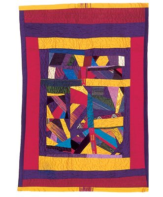 Fowler-Miller, a native of South Carolina who moved to New England as a child, started weaving after taking a course at Manhattan's Cooper Square Art School. After working for two decades as a weaver, she felt burnt out, she says. “I felt I was in a box artistically; I was too structured.” Frustrated with the more traditional scarves, shawls and placemats she had been weaving, she took scissors to them. For three hours she chopped and chopped. Then she panicked: “What have I done?” A day later she turned up the jazz and let her creativity flow. “I felt free,” she remembers. “I was having fun.” She sent off her first quilt a month later and it won an award. As did her second. She has never looked back.