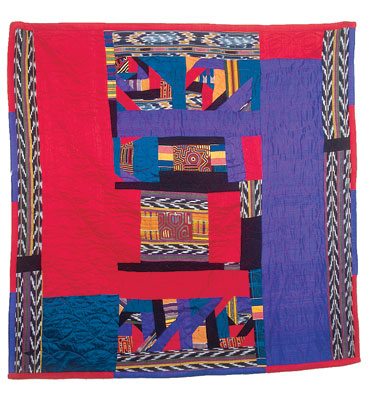 She and her friends search out unusual fabrics from around the world to use in her quilts. She shows me a swath of fabric from a Cambodian court dancer's dress, a cutting from a kimono, material from a Panamanian Indian tribe, a remnant from a Ghanaian funeral coat—all fodder for her next work of art. “And they will all exist side by side in harmony,” she says. “It's my way of saying, ‘One day we will all come together.'”