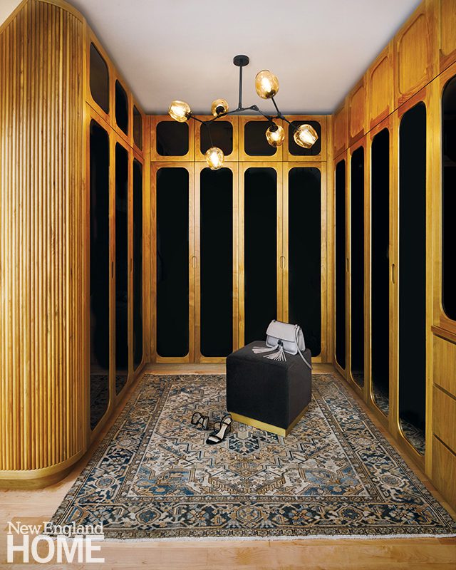 When the en suite bath was taken down to the studs, the layout was reworked to improve views—and more. The design marries warm woods with refined black-and-white details. All the furnishings, fixtures, and finishes were curated by Hill, who worked closely with the builder, Patrick Collins of Kenneth Vona and Son Construction. “It really was an amazing collaboration,” says Hill.