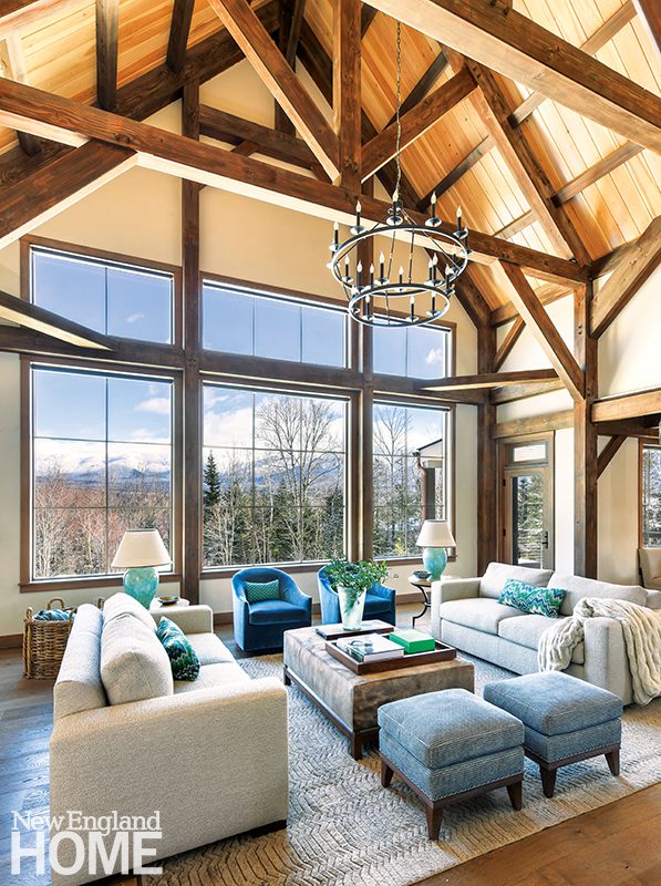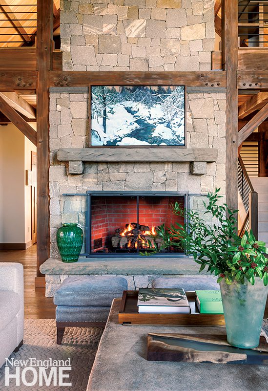 Kristen, an interior designer based in Winchester, Massachusetts, knew she wanted a timber-frame house. “Steve’s younger brother has a timber-frame home at Attitash, and I can’t even describe how much I love that house,” she says. “We’d go there, and I’d think, ‘Someday I want to do this.’ ”