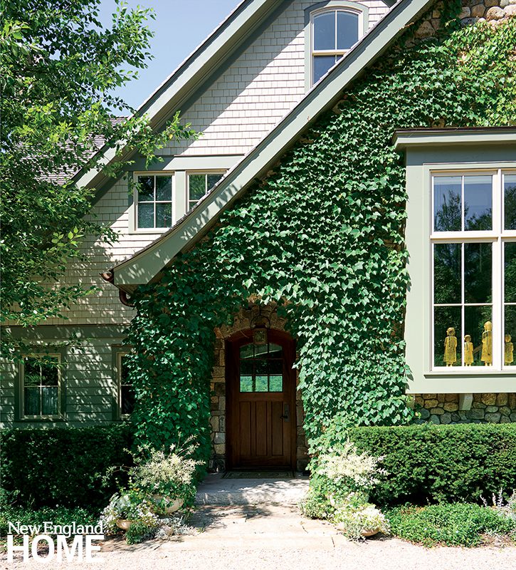 Perched along the gently curving shoreline of Lake Waramaug, where views stretch in both directions, this new home feels as though it has always belonged. Ivy climbing native stone, cedar clapboards, and shingled gables catching shifting light suggest a house rooted to its site. Until recently, however, a ramshackle cottage stood here instead.