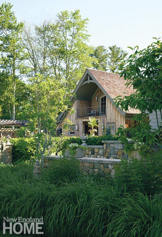 native azaleas, and reclaimed granite walls buffer the shoreline, weaving around preserved mature trees that root the house to its setting. “Aesthetics can marry well with ecology,” Young notes. Installation was executed by Nicholas Stauder of North Stone Landscaping, whose craftsmanship grounded the vision in stone and soil.
