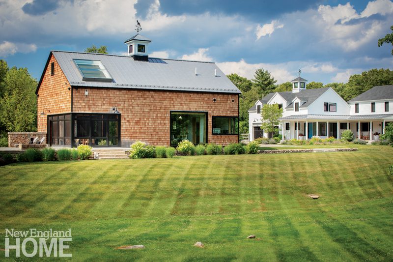 They also moved and renovated the old barn, transforming it into a dual-purpose building for the husband’s office and an entertaining space.