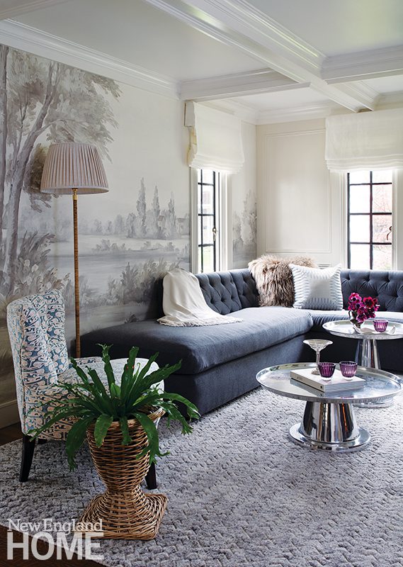 Brady paired the creamy woodwork with a pastoral mural wallcovering that spans one wall, underscoring the room’s newfound formality. “I just thought it would be more interesting than a large piece of art,” she explains.