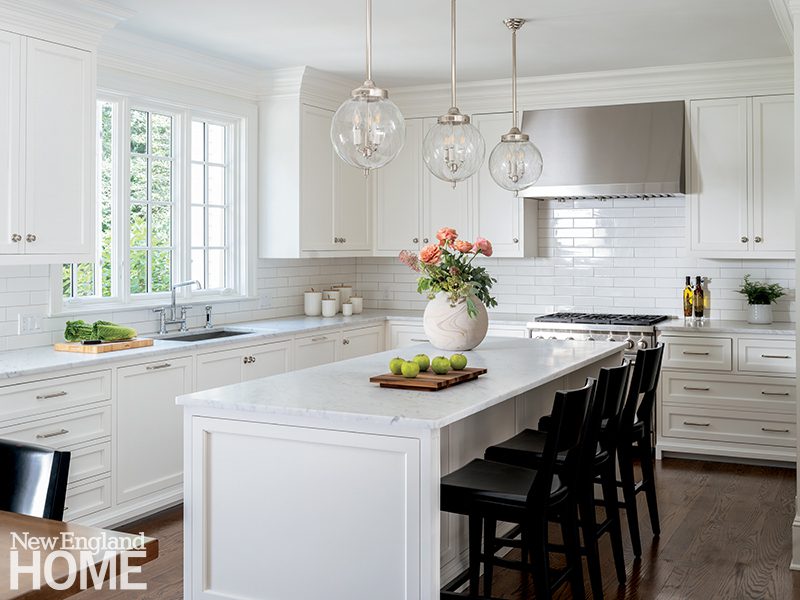 It had been a while since Sarah Blank designed an all-white kitchen, but she was up to the task. She and her team at Sarah Blank Design Studio (with offices in Greenwich and Washington, Connecticut) specialize in luxury kitchens, and she found it refreshing to turn a nineties spec kitchen in New Canaan into a functional, tranquil space. Her client finds it calming, which is exactly what they both had in mind.