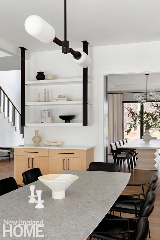 “We translated the moody design inspiration into something that still feels modern and airy with a New England coastal feel,” Dudley says. We say she merged all those elements—traditional, modern, and industrial—into one beautiful whole.