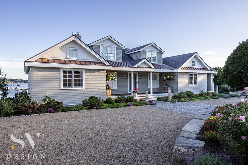 “It was a small stucco house with enormous potential,” says Tobin Shulman, principal and lead architect at SV Design, an architecture and interior design firm with offices in Beverly, Chatham, and Winchester, Massachusetts. The homesite—at the confluence of a river and the ocean on the state’s North Shore—had “absolutely fantastic water views,” says Shulman, but the house didn’t take advantage of them. “It had layout quirks that created a space where when you walked in the front door, you couldn’t see the water at all. There was a big wall and stairs that you had to navigate—and then a porch between you and the view,” he remembers.