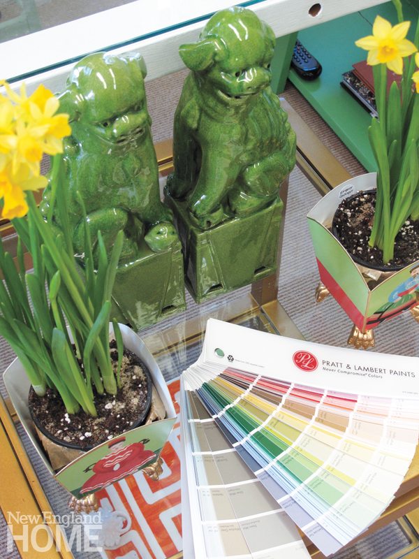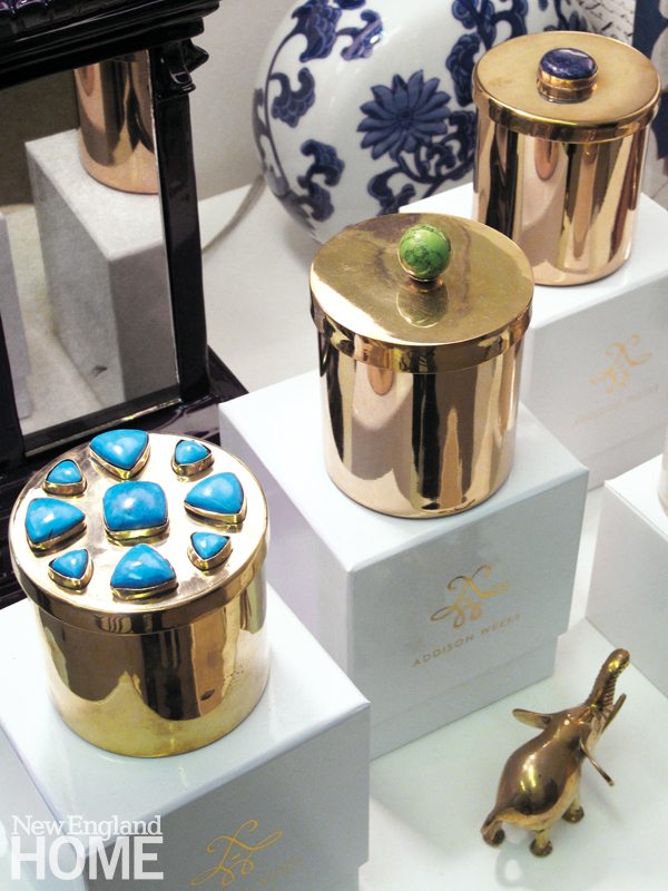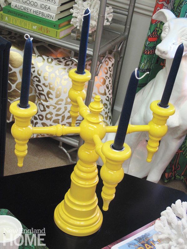 If this causes concern, uncertainty, or a bit of skepticism on the part of those weak-hearted color choosers, have a look at Trellis Home. In this tiny gem of a place, owners and color-rule breakers Allison Mattison and Liza Sharp (BFFs since childhood) have created a virtual paint box of furnishings and accessories that vibrate with color. Coral wallpaper, blue-and-white covered jars, green malachite ice buckets, a bright yellow candelabra, pink picture frames—all coexist in happy unruliness.