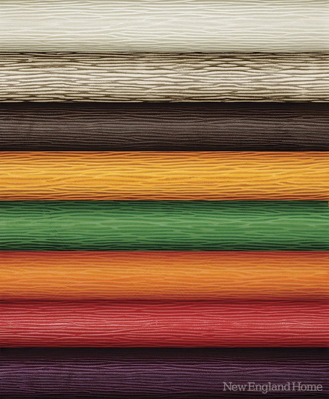 “People are looking for more than flat wall coverings or a painted wall,” says Peter Webster, vice president of Webster & Company in the Boston Design Center. Phillip Jeffries grasscloths in a rainbow of colors are hugely popular, Webster says, including a new collection called Rivets, a raffia covering sprinkled with raised resin dots.
