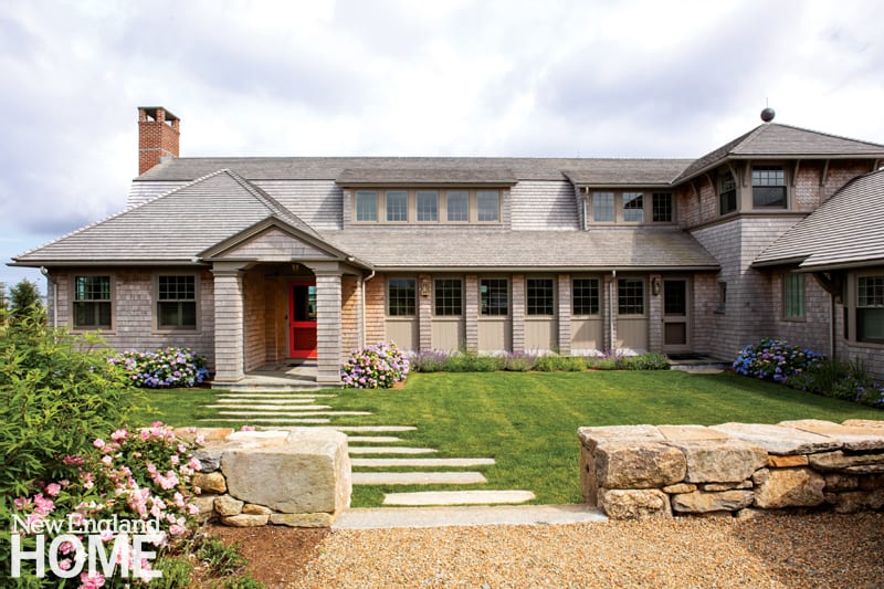 The home’s placement was restricted, though that’s not immediately obvious to the casual observer. “We were hemmed in on every side,” explains Albert, referring to the setbacks, easements, and myriad constraints that dictated where the house could sit. Its low profile and gambrel roof express the home’s twenty-six-foot height restrictions. Both also served Albert’s aesthetic goal. “We wanted to minimize the visual impact of what needed to be a pretty big house,” he says, explaining how the home’s meandering habit allowed him to position its eight bedrooms so that they could be grouped into a variety of family suites.