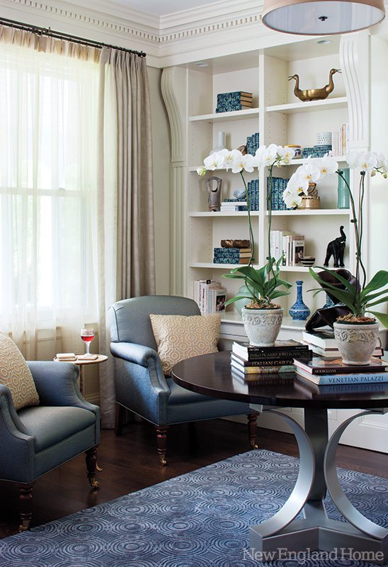 Rivoli’s fresh take works with the original woodwork and trim because a cohesive thread runs through the fabrics and finishes. “The paint colors and Kristen’s furnishings give it a more contemporary flair,” says LaFleche. “Furnishings do a tremendous job making the house feel fresh and new.”