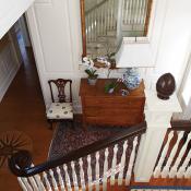 Determined that history be repeated within, the architect commissioned the hand-carved pineapple finals on the traditional Colonial Revival staircase “as an homage to the significance of ship captains,” he says.