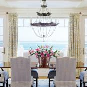 The home is built high on the coast, some thirty-five feet above the water, so the seascape is hard to miss. But the challenge, says Catalano, was capturing not just the view to the east but the one from the south as well. So the house is ell-shaped, with the family room and master suite located inside the ell, affording them the best possible vantage points.