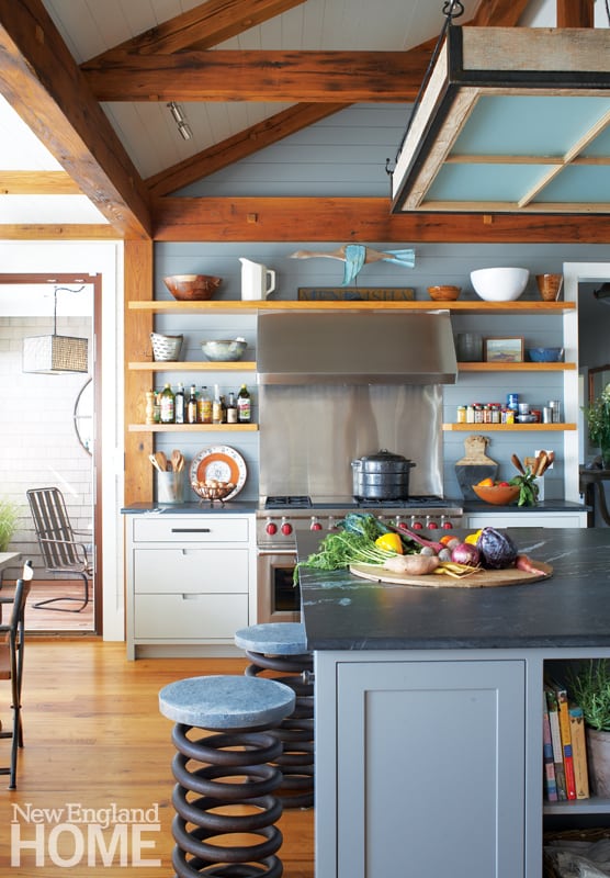 The growing family planned to summer in that house forever. But one day, a retired Navy admiral who lived down the hill knocked on the door and said he wanted to sell them his house, an old, cape-style place right on the beach. At first, the couple demurred, concerned about how much work it would take to update the house. But the site—three acres right on Menemsha Bight—was extraordinary; the seller was persistent; “and,” the husband jokes, “it’s hard to refuse an admiral.”