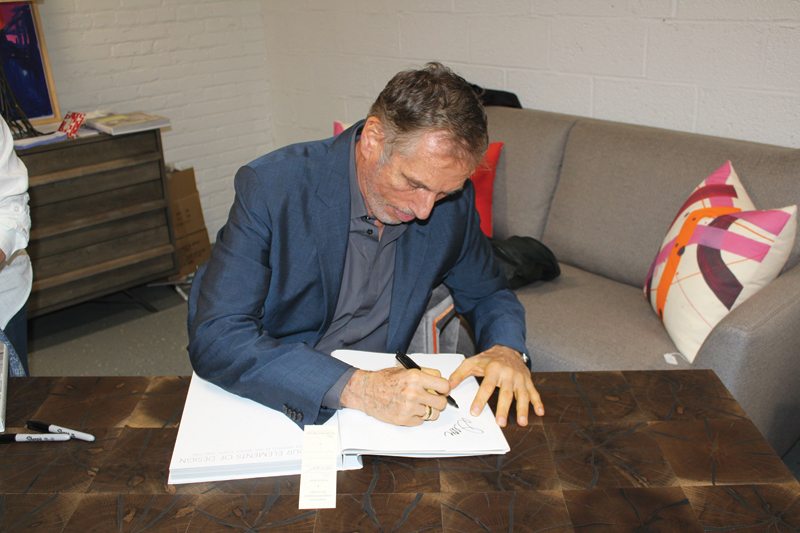 Vicente Wolf signing a copy of his book The Four Elements of Design