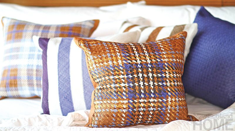 “Stefano never contemplated making a finished product with the leather he sold,” says Arnold. But one day, Arnold, who has a passion for home design, was inspired by an old swatch of woven leather Bruni had lying around. “I started imagining things I’d like to do with it,” she says. “I had the idea that we could make beautiful woven-leather pillows.”