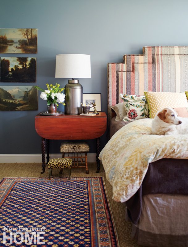 When the children’s friends come for a sleepover, they stay on the third floor in a dormitory with six mismatched Early American mahogany beds dressed with Pendleton blankets and antique patchwork quilts. “We call it the bunk room—it sort of feels like camp,” Perkins says.
