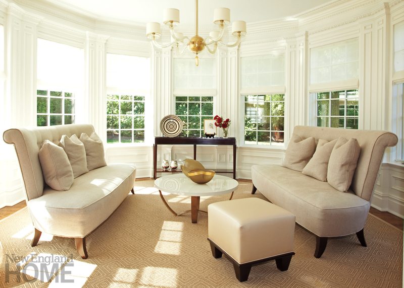 In the room’s adjoining window-lined sitting area, there’s a similar inspired referencing of historical design, with a pair of elegant French settees. Scalo gave the duo a contemporary demeanor by covering them in unassuming Belgian linen. “If it had been a floral pattern it would have been like the overdressed woman who shows up for the party,” she says. “Sometimes less is more.”