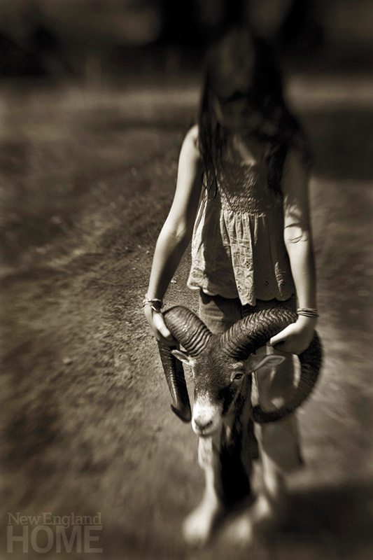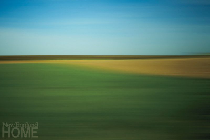 Edelman has explored other subjects in depth. She was entranced by the anthropomorphic quality of fiddleheads in the countryside, and used a backdrop to make detailed photographs of them. Red Mark shows the delicate and textured stems turning to one another, like an intimate family gathering in the woods. Girl with Ram Head is from a series that Edelman shot in Germany, where huntsmen honor the lives of the animals they hunt, just as their ancestors have done for centuries before them. The photo of a child holding a ram’s head in a refracted circle of light is a powerful and poignant memorial. In her Scapes series, Edelman’s deliberately blurred photographs capture sweeping horizons of color in pictures of land, sea and sky. Her disciplined attention to tonality, proportion and framing is what makes this work so compelling and so gorgeous. Like a realist painter who moves toward abstraction, she’s learned the rules. And now she gets to break them. •