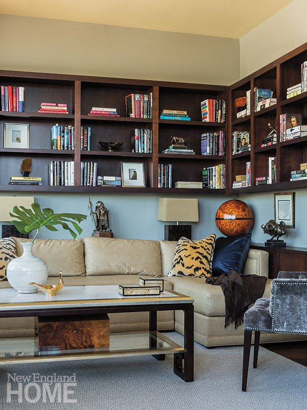 Michael, fortunately, was open to change. The couple brought in Boston interior designer Phoebe Lovejoy Russell to scale back the home’s masculinity and create an atmosphere that balanced both spouses’ tastes.